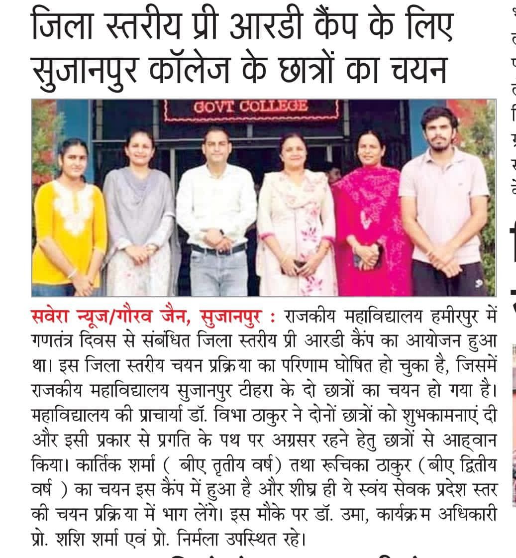 THAKUR JAGDEV CHAND MEMORIAL GOVT. DEGREE COLLEGE, SUJANPUR TIRA